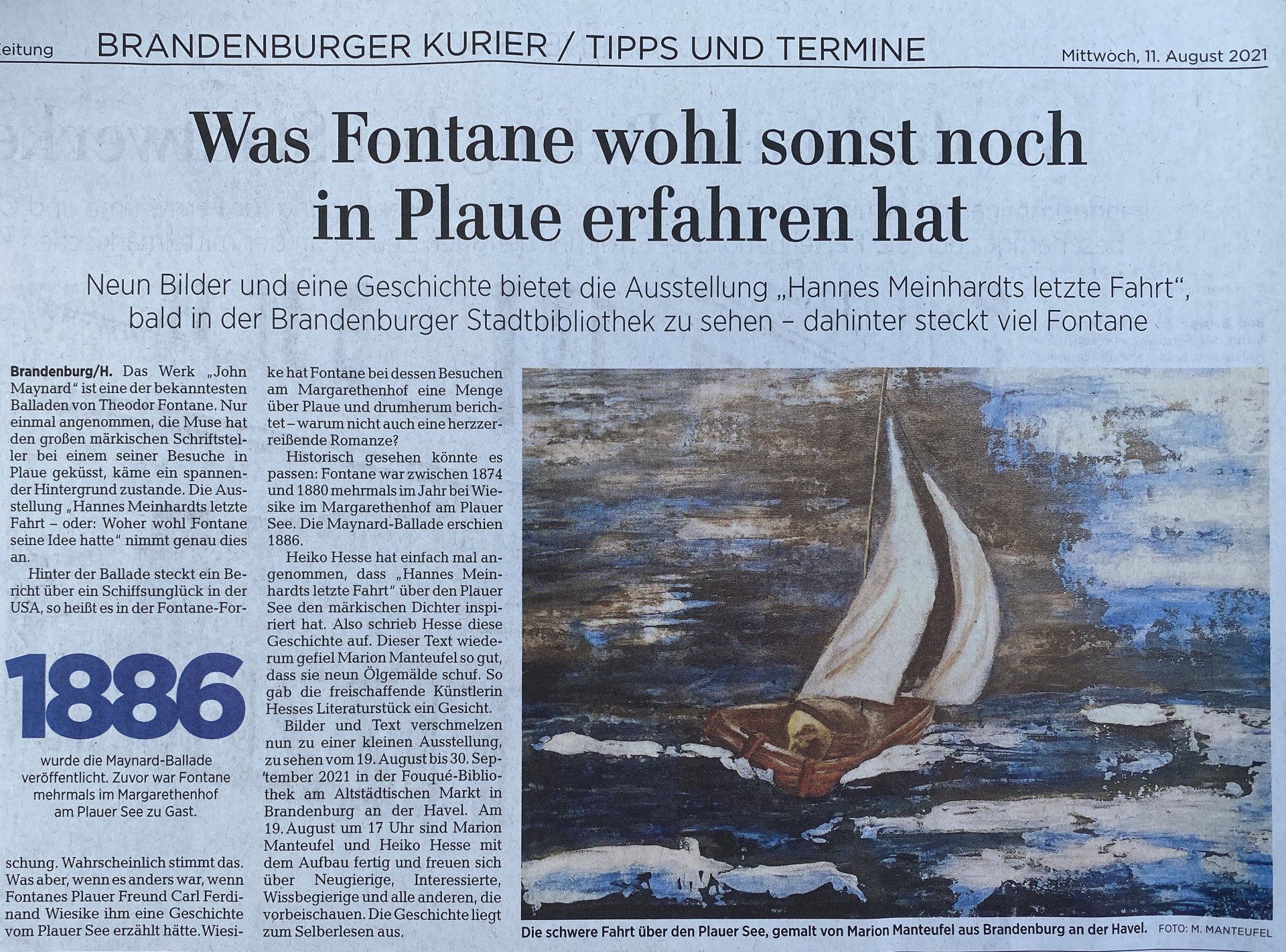 Ausstellung in der Fouquè-Bibliothek Brandenburg an der Havel Illustrationen zur Geschichte "Fontane im Havelland - Hannes Meinhardts letzte Fahrt" von Heiko Hesse